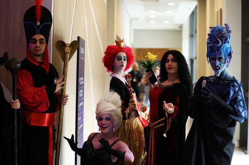 En el stand que recrea Magic Kingdom, el popular parque temático de Orlando, se reúnen un grupo de villanos: Hades, la Reina Malvada, la Reina de Corazones, Jafar y Gastón. Plenamente caracterizados, todos ponen su mejor cara de malo mientras les toman fotos y videos que probablemente circularán en redes sociales y medios de comunicación.