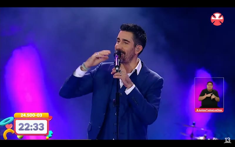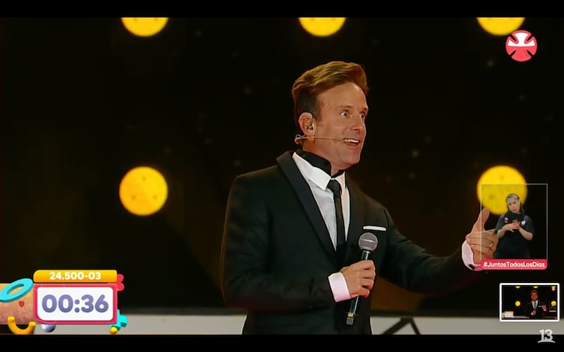 Incluso, para darle suerte, Fuenzalida -alentado por el público- le dio el tradicional “beso” que se ejecuta en estas circunstancias y sobre todo en un escenario tan clásico como el de la Ciudad Jardín. Posterior a ese instante, le llegó el momento a Kidd Voodoo -que estuvo en el Festival de Viña este 2024 como invitado de Los Bunkers, entre otros momentos-, Leo Muena, Pablito Pesadilla y La Combo Tortuga para interpretar el himno de la cruzada, Juntos por la Teletón.