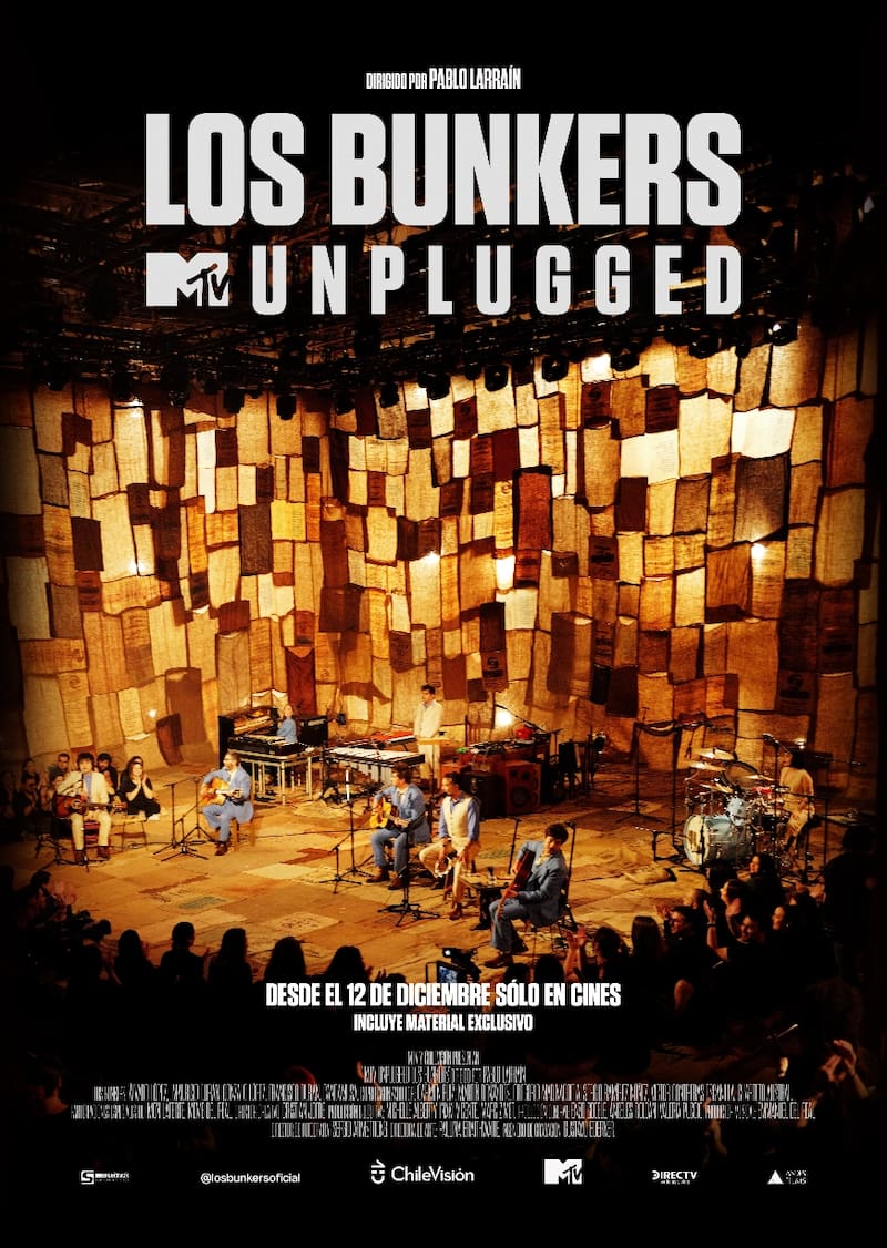 Los Bunkers ya tienen fecha para el esperado estreno del MTV Unplugged, que se proyectará en cines a lo largo del país y México el próximo 12 de diciembre. La producción incluirá contenido exclusivo y nunca antes visto para su proyección, a tono con la tendencia de exhibir conciertos y documentales musicales en las salas, tal como sucederá con títulos como Stop making sense de Talking Heads e Interstella 5555 de Daft Punk.