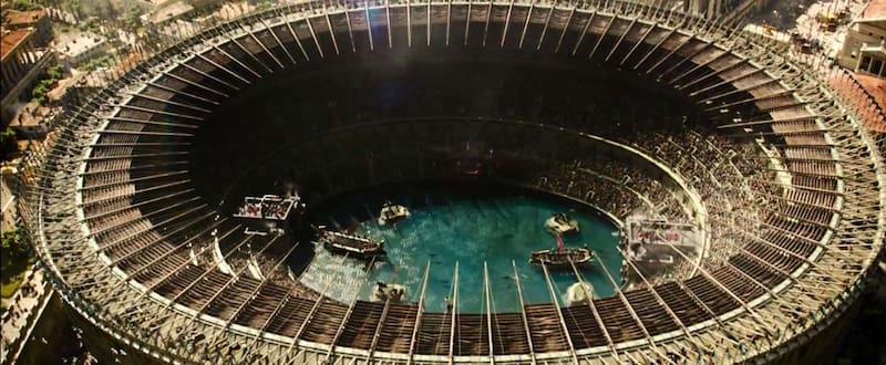 ¿Tiene asidero histórico la representación de una batalla naval en la arena en el III d.c.? No necesariamente. Según el libro El Coliseo (Crítica, 2024) de los historiadores Keith Hopkins y Mary Beard, en rigor esto fue efectivo en los inicios del coloso, cuando se inauguró en el 80 d.C. bajo el emperador Tito. Citando la historiografía romana, indican: “Dion Casio escribe con total convicción que Tito ‘llenó repentinamente la arena con agua e introdujo en ella caballos y bueyes que habían aprendido a nadar’...a continuación describe los barcos que Tito sacó en escena para representar un combate naval ficticio, que al parecer recreaba una de las famosas batallas navales de la Grecia del siglo V a.C.”.