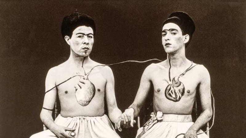 “Como en la pintura de Frida Kahlo, Casas y Lemebel exhiben dos cuerpos acoplados, envueltos en una visualidad quirúrgica. Cada uno expone un corazón pintado en su pecho, y ambos órganos, uno indemne y el otro abierto, se conectan por una transfusión sanguínea. En los años de la expansión del vih-sida, la escenificación de Las dos Fridas por dos artistas homosexuales es también la imagen desafiante de cuerpos marcados como peligrosos y, a la vez, expuestos al peligro frente al pánico que despertaba, en esos años, la circulación descontrolada de los flujos corporales”, explica la página oficial del MALBA.
