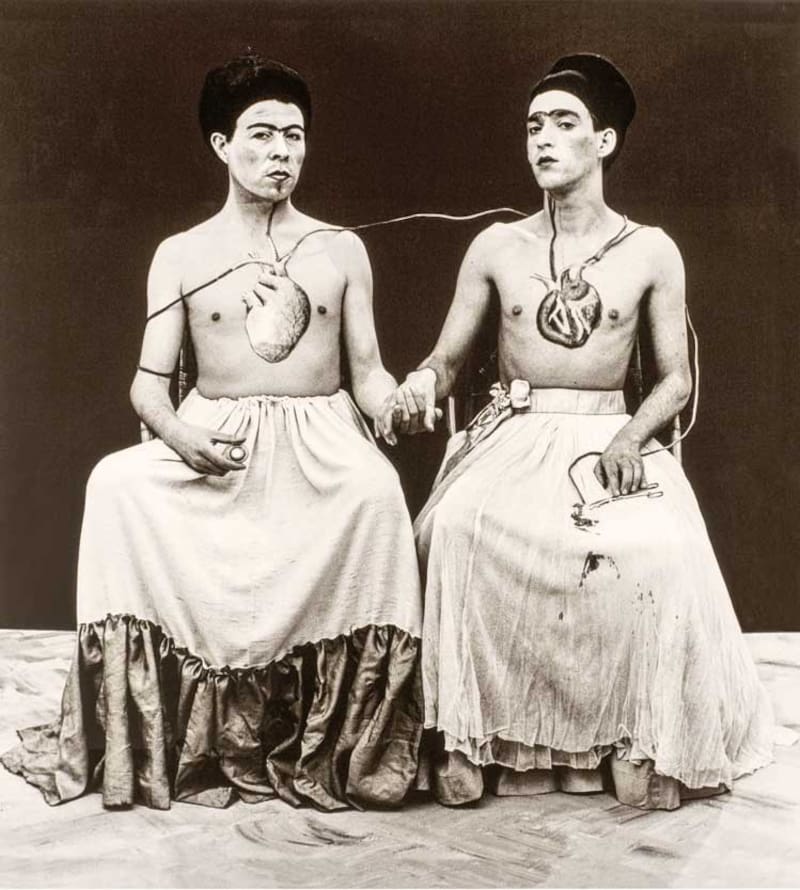 Las dos Fridas (1989) es una de las imágenes más representativas de las Yeguas del Apocalipsis. El cuadro vivo fue inmortalizado por el fotógrafo chileno Pedro Marinello y actualmente descansa en el Museo de Arte Latinoamericano de Buenos Aires (MALBA).