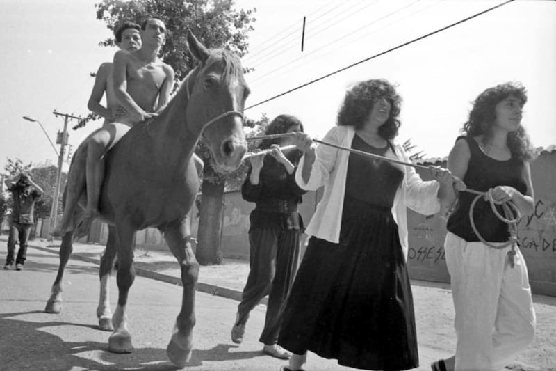“Las ‘Yeguas’ pronto se transformaron en un mito. Eran el terror de los lanzamientos de libros y de las exposiciones de arte. Irrumpían y nadie sabía qué podían terminar haciendo”, consigna Memoria Chilena. Pero el colectivo no solo irrumpió en reuniones artísticas, sino también en cónclaves políticos.