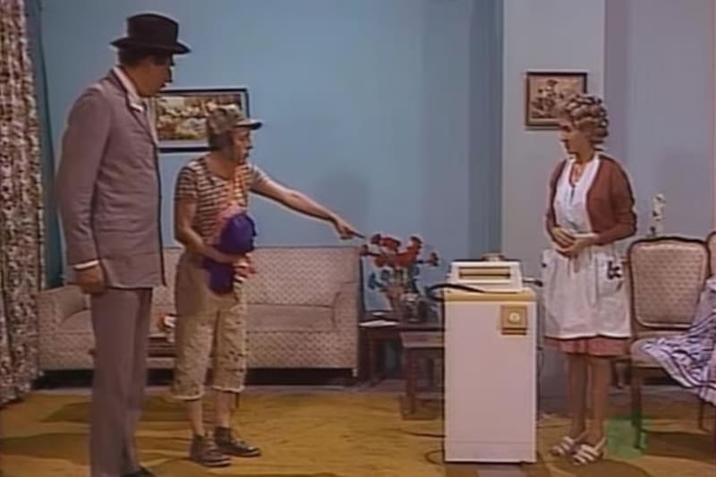 Y en eso está cuando el Chavo comete la torpeza de echar todo el contenido de la caja de detergente en polvo a la máquina. ¿Resultado? La lavadora comienza a echar mucha espuma, y por el afán de arreglarlo, el muchacho saca la manguera y “sin querer queriendo” moja a todos en la villa. Eso obliga a Doña Florinda a devolver el artefacto y volver a usar la lavandera de la villa.