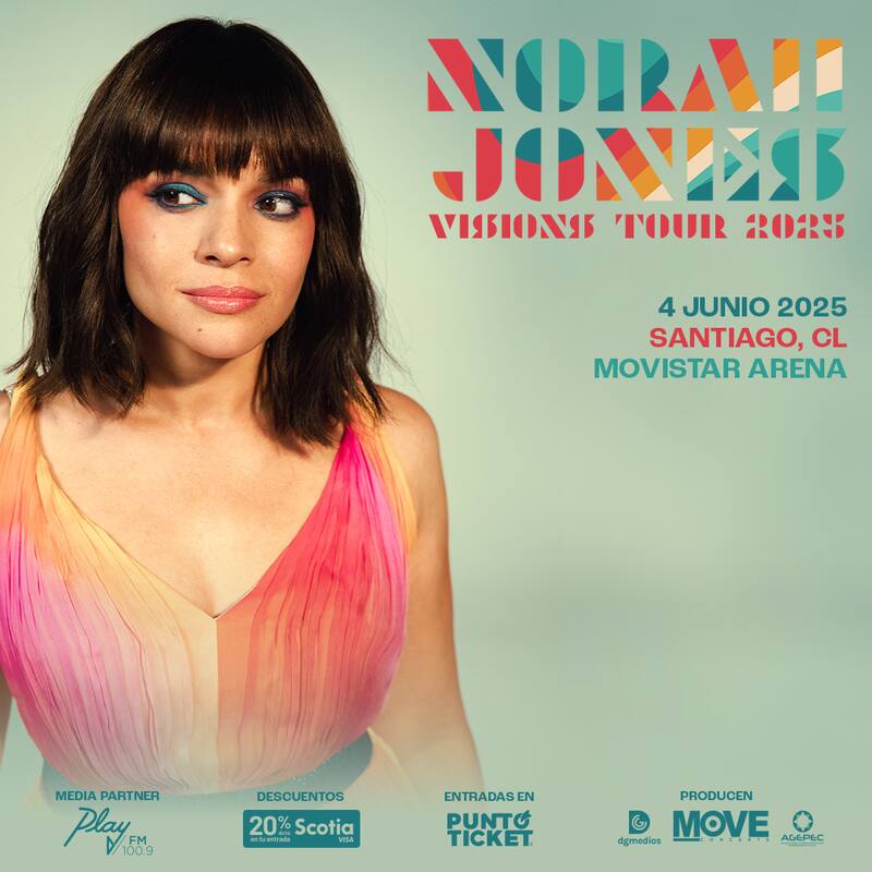De la mano de su noveno álbum de estudio, Visions, la cantante, compositora y pianista estadounidense Norah Jones anunció su regreso al país el próximo 4 de junio de 2025 en el Movistar Arena. En colaboración con el destacado productor y multiinstrumentista Leon Michels, el disco es un vibrante y optimista conjunto de 12 íntimas canciones, según ha resaltado la crítica.