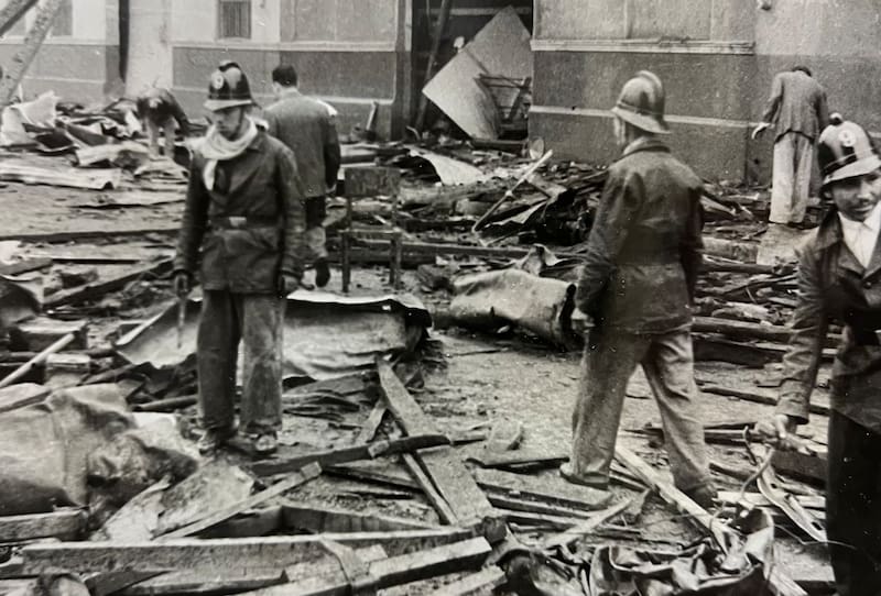 La escena era espantosa con “bomberos totalmente ennegrecidos por la explosión pidiendo auxilio, supongo, ya que no escuchaba nada”. Había cuerpos inertes y mutilados por todas partes. Los voluntarios de la estructura telescópica “colgaban de sus piernas que estaban entrelazadas en los palillos de la escala”. La onda expansiva y el fuego, que afectó a inmuebles en cinco cuadras, les había dado de lleno.