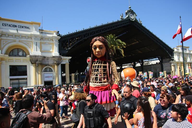 En su jornada inaugural, Amal, una niña de 3,5 metros de altura, recorrió desde Estación Central hasta la Plaza de La Constitución en la comuna de Santiago.
