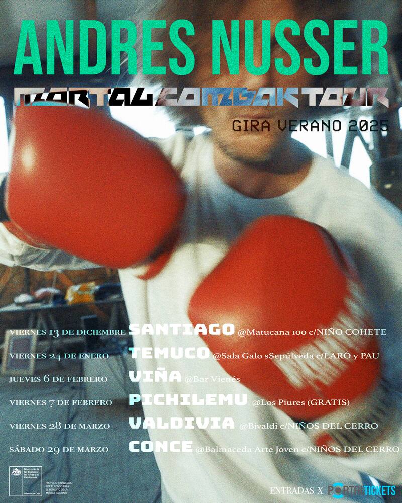 Partiendo este 24 de enero en Temuco, junto a Pau y Laró, continuando el 6 de febrero en Viña del Mar, al día siguiente en Pichilemu; para seguir en Valdivia y Concepción durante marzo junto a Niños del Cerro, Nusser describe este momento como un punto “exploratorio en el que estoy constantemente buscando algo que me haga sentir que estoy tomando agua nueva de un manantial. No me gusta repetirme, me gusta explorarme”, cuenta sobre una era en la que su música está escrita desde el corazón.