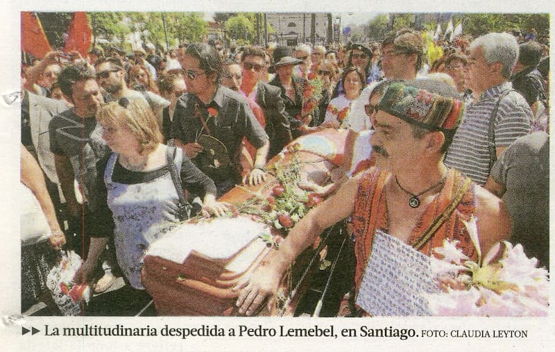 Juan Pablo Sutherland también recuerda esos momentos. “Al pasar los años, lo único que puedo decir, es la algarabía popular por despedir a unos de los suyos y la capacidad que tenia Lemebel para conectarse transversalmente con la cultura popular chilena. Tanto el velorio como los funerales fueron la expresión de su nomadismo cultural, marica, político, social, contracultural, under, en todos los momentos de su trayectoria”.