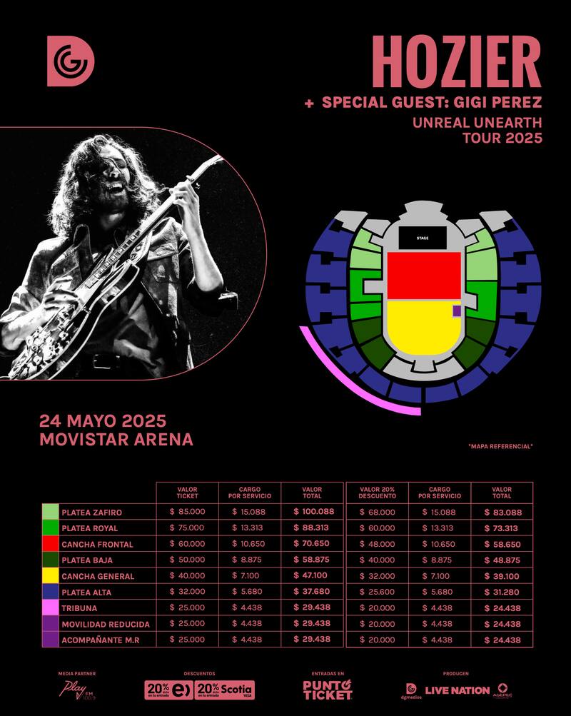 Hozier se prepara para ofrecer un concierto en Santiago, esta vez en el marco de su gira mundial Unreal Unearth. El irlandés regresará a Chile el próximo 24 de mayo para presentarse en el Movistar Arena.