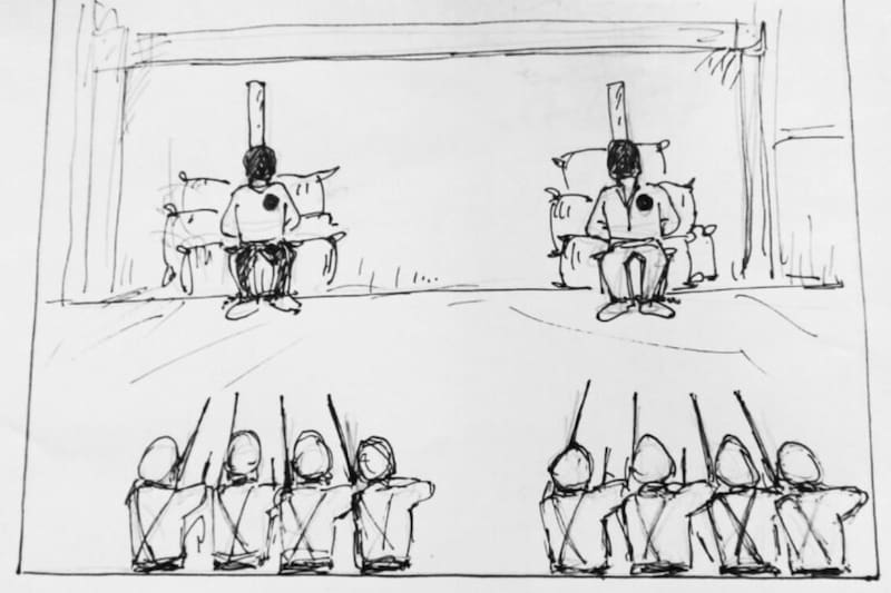 “Los fusileros entraron con uniforme y zapatillas. El piso estaba cubierto con lonas y frazadas para que Sagredo y Topp Collins no supieran el momento exacto del fusilamiento. A los dos hombres les colocaron un disco naranja en la zona del corazón para que allí apuntarán los tiradores”, escribió Gai.