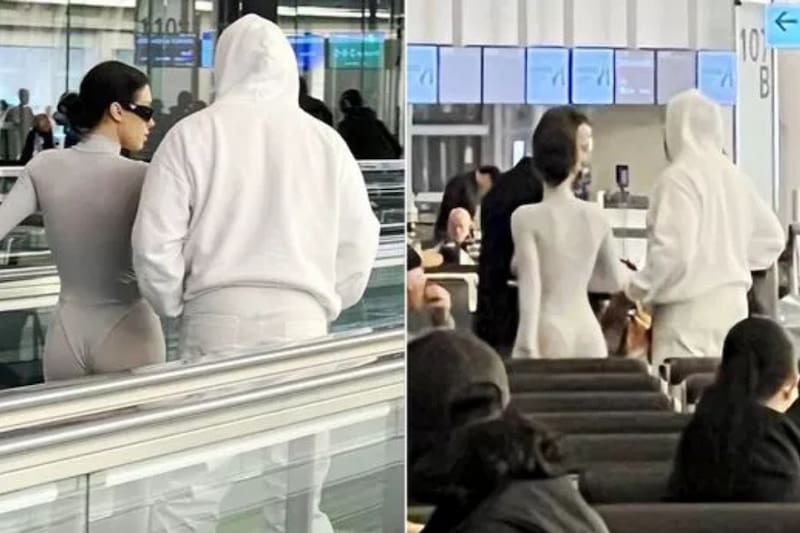 En su paso por el aeropuerto, Bianca Censori volvió a acaparar miradas con un atuendo que incluía transparencias sutiles y dejaba entrever su ropa interior.