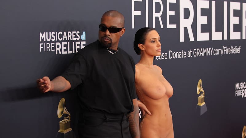 Kanye West y Bianca Censori generan polémica en la alfombra roja de los Grammy: la esposa del rapero apareció casi desnuda