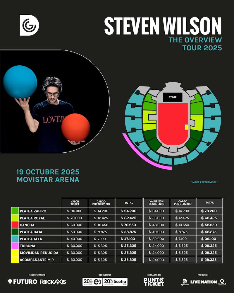Steven Wilson, el músico y compositor británico nominado seis veces a los premios Grammy y que renovó el sonido del rock progresivo para el nuevo siglo, anunció su concierto a Chile en el marco de la gira The Overview Tour. También se presentará en Estadios Unidos, Canadá, Méexico y Brasil.