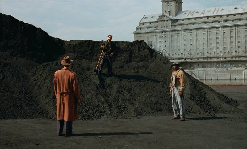 Una de las primeras imágenes de El brutalista que circuló fue la de tres hombres en una faena de carbón. Uno está sobre un montículo de ese material y con una pala en la mano derecha. El otro aguarda abajo. Ambos han interrumpido su trabajo debido a la sorpresiva llegada de un hombre, un tipo impecablemente vestido y con una voz particular. La clase de personaje que se hace notar incluso antes de decir cualquier cosa.