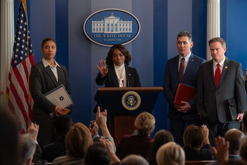 “Fue algo diferente. Ya sabes, un mundo diferente. Pero uno en el que disfruté asumir la responsabilidad”, señala a través de videollamada desde Nueva York. “Lo pasé muy bien usando esos trajes de personas poderosas, estando detrás de ese escritorio en el Salón Oval, tomando esas decisiones, evaluando las opciones, escuchando buenos consejos, tratando de manejar las intenciones y las ambiciones desmesuradas de los demás. Así que fue una oportunidad maravillosa. Es un hermoso guión”.