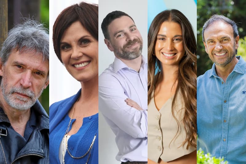 Este grupo de talentos lo integran la presentadora Tita Ureta, la actriz Paola Volpato, el actor Francisco Melo, el periodista Rodrigo Sepúlveda —quien también es jurado—y el periodista José Antonio Neme. La idea de Mega también es potenciarlos como rostros: por algo también la determinación de adelantar la Competencia Folclórica resulta estratégica, para que ahí aparezcan los coanimadores y puedan contar con una mayor visibilidad.