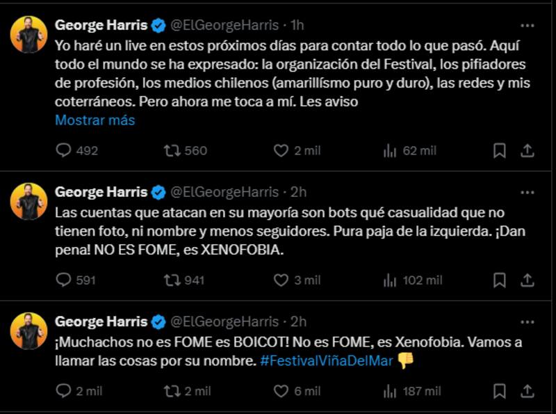 Por Constanza Moncada M.George Harris se desata en redes sociales disparando contra su paso por Viña: “No es FOME, es xenofobia”