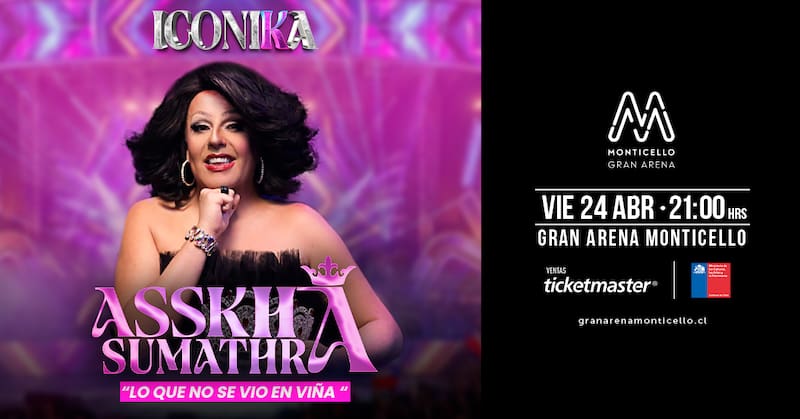 Después del abrupto final en su presentación del Festival de Viña del Mar 2026, Asskha Sumathra presentará su show “Lo que no se vio en Viña”. El 24 de abril, será el debut de la comediante transformista en el Gran Arena Monticello. Las venta de entradas comenzará el 6 de marzo a las 14:00 horas por Ticketmaster.