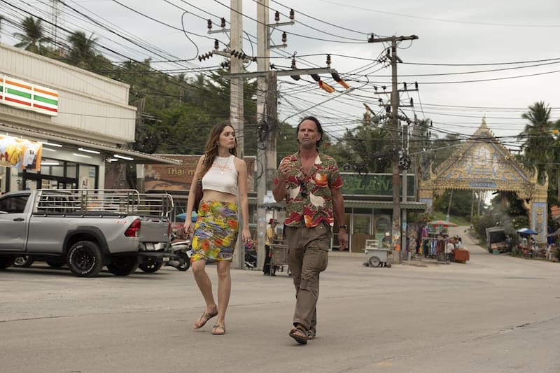 En la ficción la inglesa interpreta a Chelsea, una joven que llega a un ostentoso resort de Tailandia en compañía de su novio, el atribulado Rick (Walton Goggins). A simple vista, parecen agua y aceite: ella es dulce y él es duro; ella es extrovertida y él es hermético. Pero para ella eso no supone un problema. Desde su singular perspectiva, son almas gemelas y representan algo parecido al yin y el yang, dos fuerzas opuestas pero complementarias.