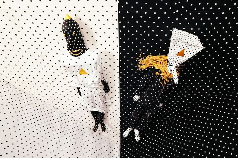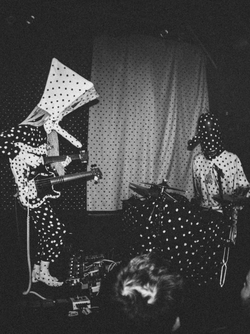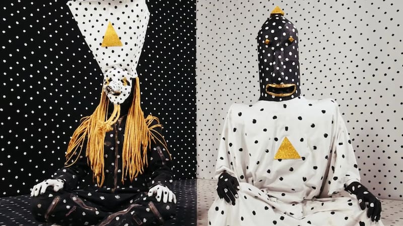 El misterio del grupo creció a partir de su particular puesta en escena. Como si fueran dos seres de otro planeta, visten unos trajes que combinan unas vistosas máscaras de papel maché, con narices enormes, y largas mantas de lunares. Y visibles, los triángulos en dorado. Como invocando alguna misteriosa fuerza extrasensorial.