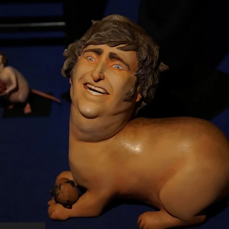 Y precisa: “Formalmente la intervención implica infiltrar, camuflar y acoplar cinco esculturas en el espacio antes nombrado: Netanyahu vestido como Chucky (el muñeco diabólico) y sentado en el sillón para visitantes, Milei como un perro de chalet a los pies del mandatario de USA, mientras Santiago Abascal, Isabel Diaz Ayuso y José Luis Martínez Almeida se posan como roedores cual película de Disney”.