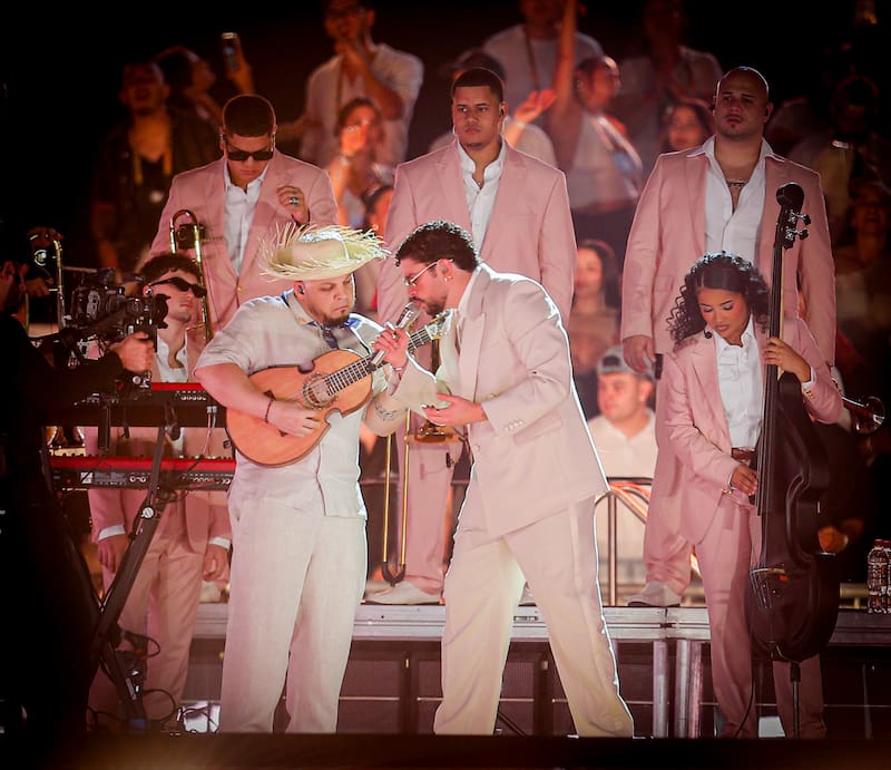 Aparecieron por la “casita” los Pleneros de la cresta, el conjunto de música tradicional puertorriqueña que participan en DTMF. Con su ritmo irresistible, a punta de percusiones, de alguna manera marcan la transición entre el repertorio reggaetonero con la propuesta más reciente. Permite además cerrar el segmento a tope y engancharlo con el siguiente.