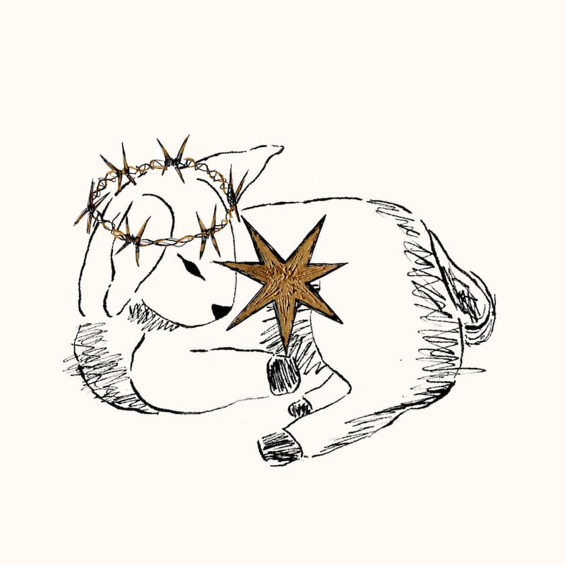 La portada del álbum, con un cordero que luce una corona de alambre de púas (en alusión a una corona de espinas) y una estrella de 7 puntas (por cada uno de los integrantes), fue diseñada con pluma y papel bond por Javiera Donoso, la encargada del trabajo gráfico de la banda. “La idea del cordero primero estaba situada dentro de una escena, en que no era el protagonista. Después estuve boceteando y les gustó mucho la idea del cordero solo y de ahí me lancé a dibujar”.