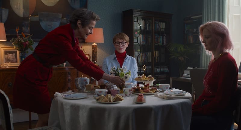 “La mayoría de las familias tienen un componente performativo. Ni siquiera importa el tipo de familia ni la época. Creo que a menudo estamos representando una actuación de nosotros mismos. En particular en esta dinámica familiar hay una actuación formal en el momento en que toman el té, es como una puesta en escena (...) Hay una incomodidad inherente y una sensación de actuación que creo que fue interesante interpretar –en el mejor de los casos– de forma sutil”, plantea.