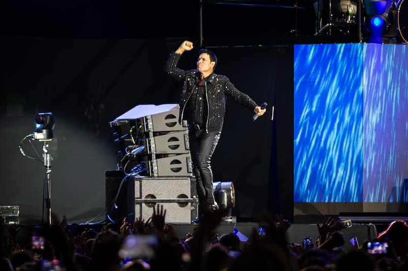 Después del puntapié inicial, Chayanne se tomó unos segundos en las tablas y respiró hondo con claro cansancio. Algo que repetiría a lo largo del show después de las canciones más bailables. Un recordatorio de que la estrella latina, aunque no lo parezca, ya tiene 57 años.