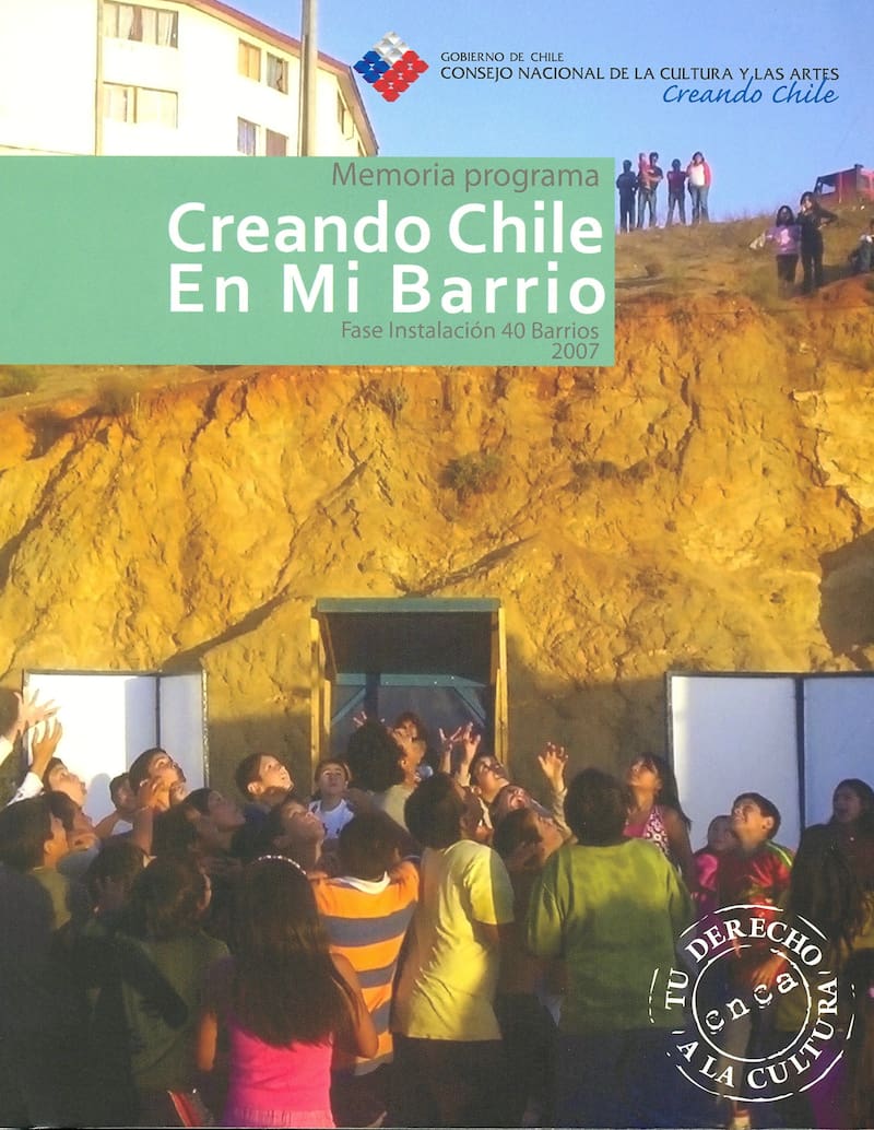 Para ello, plantea tres ejes. Uno de ellos es reactivar iniciativas como Creando Cultura en Mi Barrio. Al buscar información, se encontró datos sobre Creando. Chile en mi barrio - se presume un error en el nombre— originado en 2007 en el gobierno de Michelle Bachelet, por parte del Consejo Nacional de la Cultura y las Artes, liderado por la actriz Paulina Urrutia. Este tenía como objetivo fortalecer las capacidades culturales en 40 barrios vulnerables.