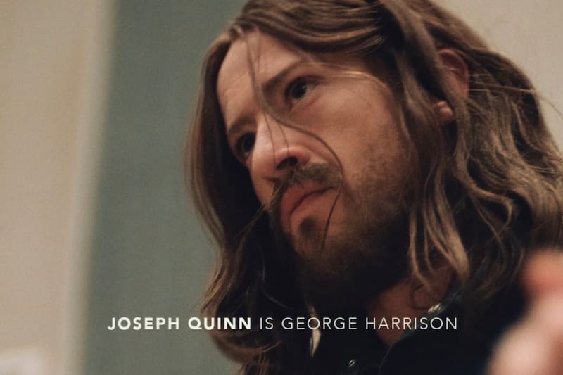 Por último, y con la remembranza más cuestionada, está la imagen de Joseph Quinn, a quien se le ve como George Harrison con una barba que se asemeja a la que tenía el artista durante los últimos años de la banda.