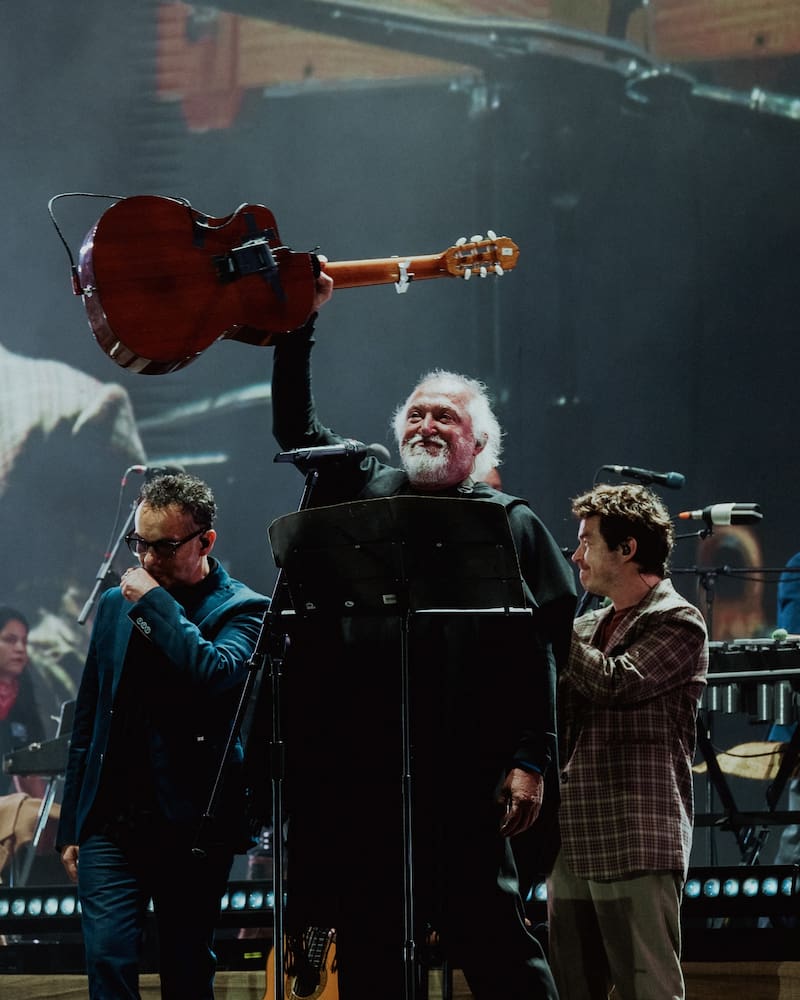 Pasa uno de los grandes momentos del repertorio del Unplugged y la gira, la versión de Let’em in, de Sir Paul McCartney. Por supuesto con el fenomenal unísono de quenas y theremin, trazado entre Benavides y la dupla de Sergio Ramírez y Víctor Contreras.