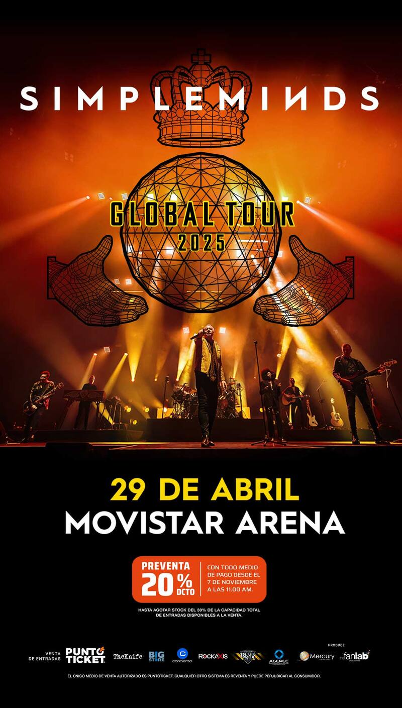 Simple Minds, una de las bandas más exitosas de los años 80 y principios de los 90, vuelve a Chile luego de 30 años. Los referentes del rock, new wave y post punk, tocarán en Movistar Arena el 29 de abril de este año, en una velada donde sus integrantes prometen sorprender al público.