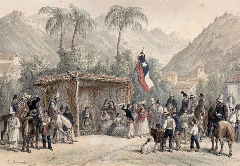 En la florida primavera de 1822, la gente del bajo pueblo ya se congregaba en las fondas para celebrar el cumpleaños de la joven nación llamada Chile. En esos tiempos, eran instalaciones levantadas con palos, paja, ramas de árbol, lo que hubiera, para recibir a los alegres parroquianos. Ahí fue a darse una vuelta la viajera inglesa María Graham, quien en su Diario de mi residencia en Chile anotó lo que vio.