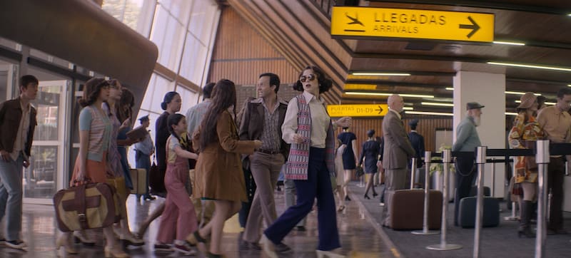 En otra escena posterior, la esposa de Chespirito no quiere dar permiso a las hijas que tiene con el comediante para acudir por la noche al bar del hotel en donde se presentará un famoso cantante.
