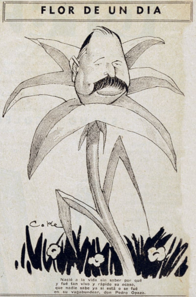 “Aparece todos los miércoles, aunque llueva”, rezaba la publicación. Ya en su primer número se mostraba el humor gráfico y mordaz que lo caracterizaría con los años, y por supuesto, el breve gobierno de Opaso fue tema con la caricatura “Flor de un día”. Con el tiempo -y tal como hicieron con otros políticos- Topaze apodaría al desgraciado Opaso con el mote de “El pasador”, que lo acompañó hasta su muerte, en 1957.