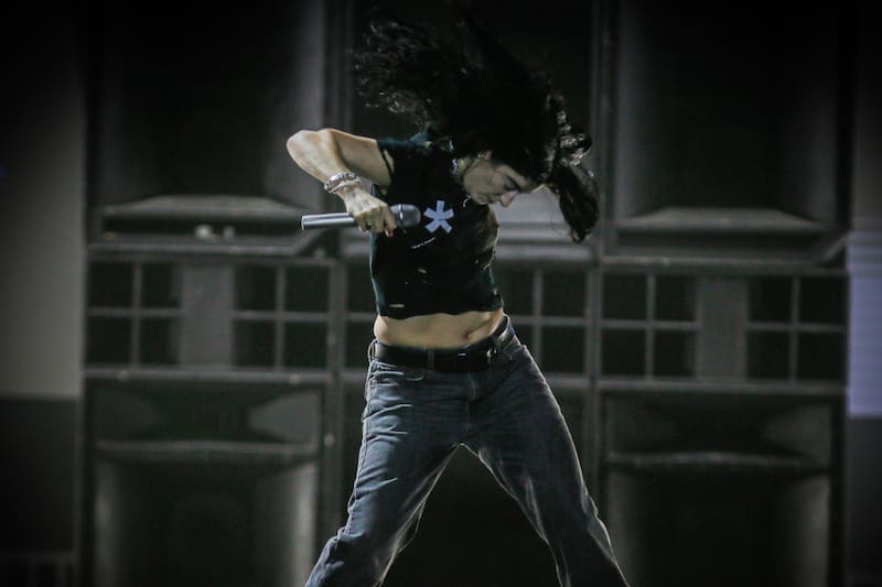 Cerca de la quinta canción aparecen un par de bailarines y, al igual que el resto de su performance, sus movimientos son simples, recreando escenas más que coreografías complejas. Pasan las canciones y ella performa desde el suelo, al lado de la banda, recorre la pasarela. Es dueña del escenario y lo sabe.