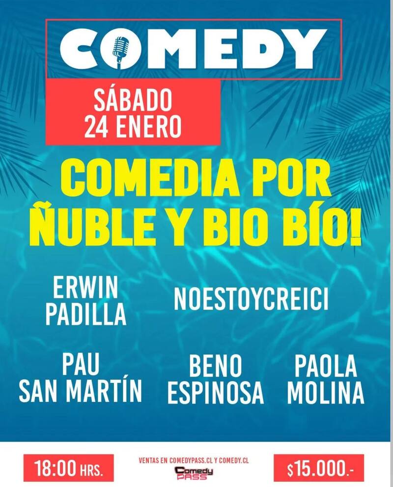 El restobar Comedy, uno de los lugares donde se presentan comediantes locales, también tendrá un evento por la emergencia. Este se realizará el sábado 24 de enero a las 18:00 horas en el recinto ubicado en Seminario 614, Providencia. Los artistas que se presentarán son Erwin Padilla, Noestoycreici, Pau San Martín, Beno Espinosa y Paola Molina.