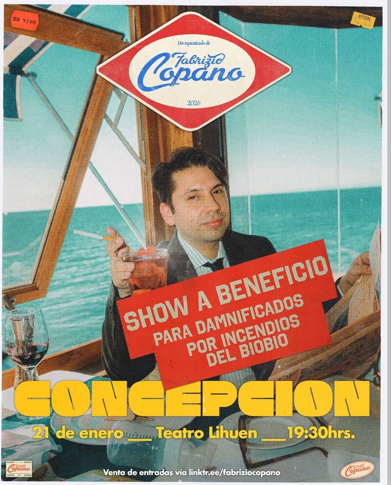 Fabrizio Copano continua su gira donde ha visitado cuidades como Valdivia y Talca. Debido a la emergencia por los incendios, el comediante decidió que su próxima fecha en Concepción se volviera un beneficio para las familias damnificadas de la región.