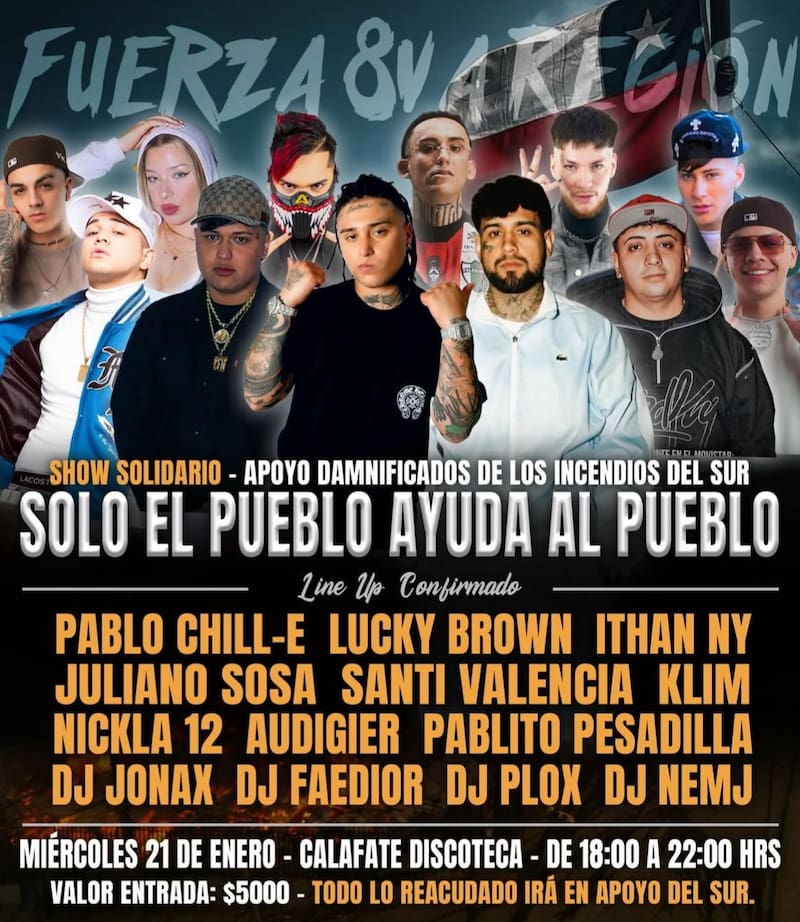 La lucha contra los incendios continua en las regiones del Ñuble, Biobío y La Araucanía. Por ello, diversos artistas se han organizado para realizar eventos a beneficio de los afectados.