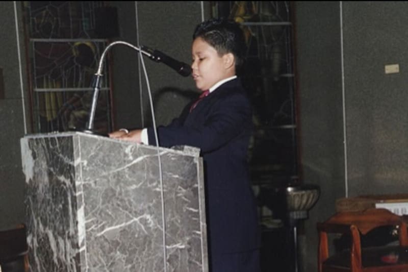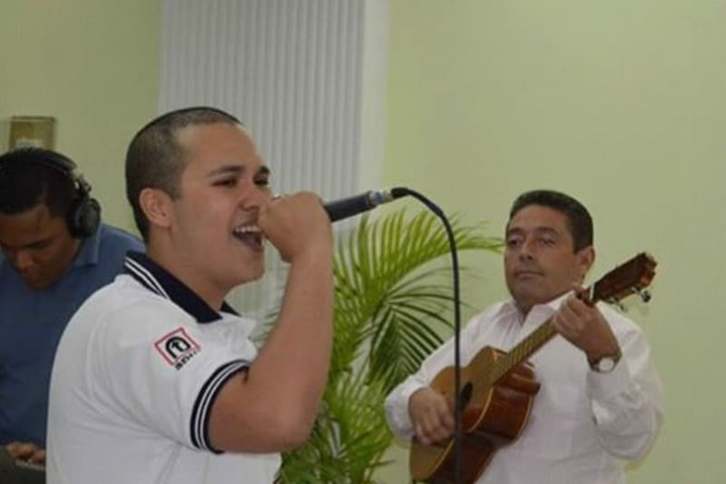En Maracaibo, un niño canta en un micrófono de pedestal. El muchacho tiene una inclinación natural por las disciplinas creativas y ha desarrollado la comedia para destacar y evadir bromas sobre su peso.