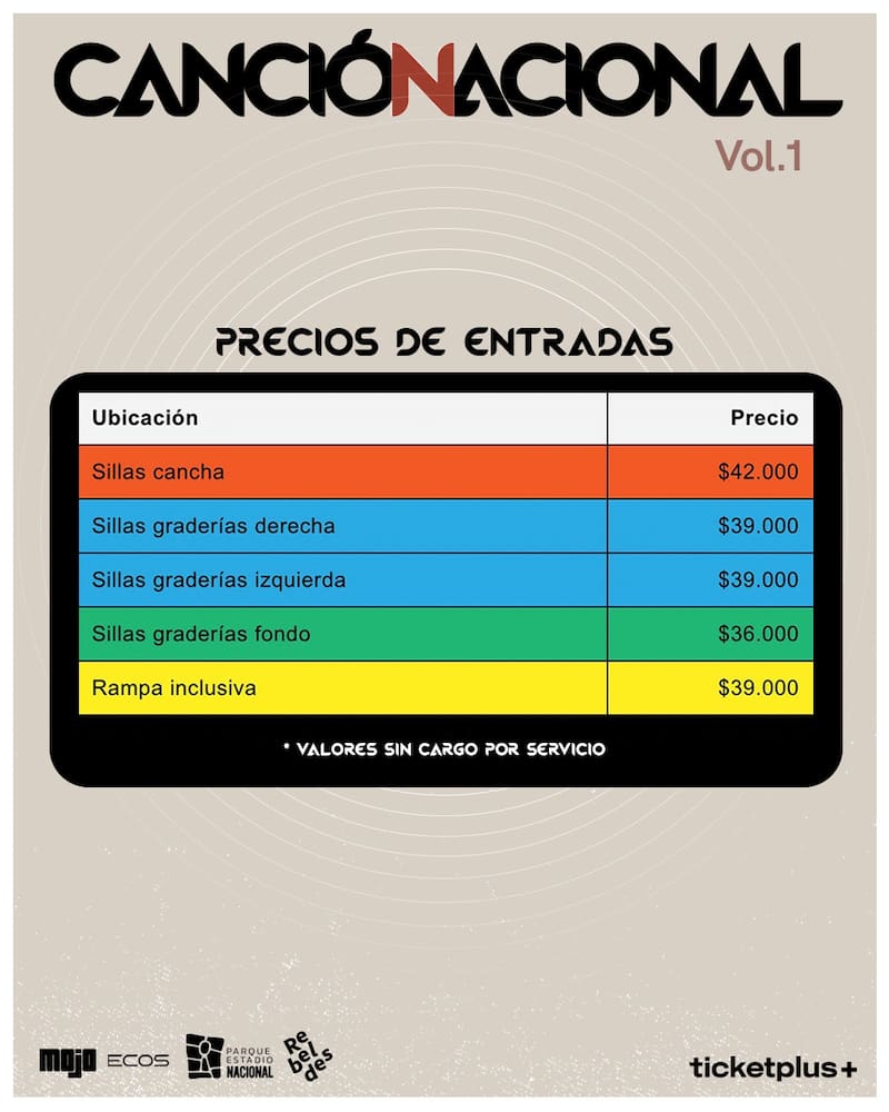 Este jueves, y bajo sistema Ticketplus, inició la venta de entradas para la primera edición de Canción Nacional, histórica cumbre en vivo que se realizará el sábado 25 de abril, en el Parque Estadio Nacional.