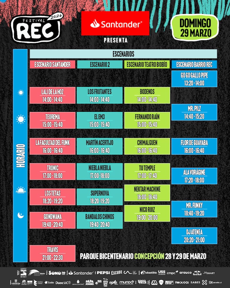 Faltando pocos días para la materialización de su undécima edición, el Festival REC entregó los horarios de las presentaciones de los artistas que serán parte de evento el próximo 28 y 29 de marzo.
