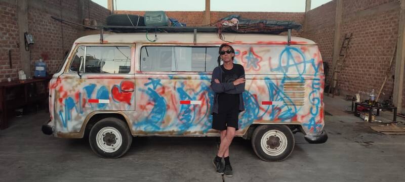 “Es una especie de road movie travesti en la que cruzo medio continente en esa combi oxidada, y también parte de mi vida. Pedro Lemebel iba siempre pegado en la radio y la bandera de las Yeguas flameando por la ventana”, recuerda Casas.