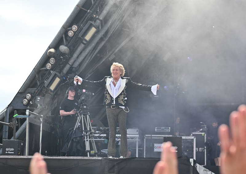 Un poco más tarde en el mismo escenario en el espacio reservado para leyendas de la música, se presentaba a sus 80 años, Sir Rod Stewart, transformándose en el artista más longevo en la historia del festival en subirse al escenario principal de Glastonbury. A pesar de lo que se podía creer, el público asistente era muy heterogéneo: niños, adolescentes, jóvenes, adultos e incluso personas de la tercera edad se veían para disfrutar un show que tenía todos los condimentos para dejar huella.