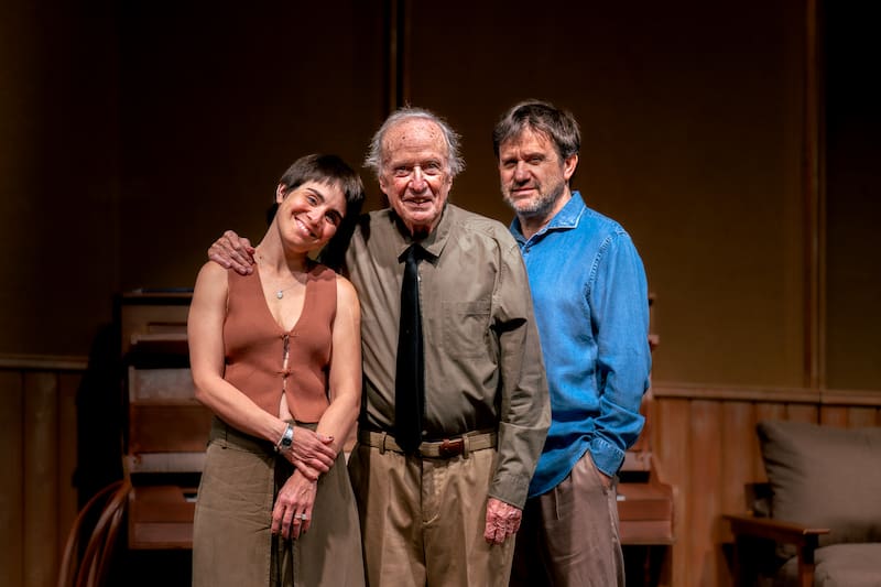 Todos esos problemas, todos juntos. Sí, es cierto, todos juntos esos problemas. Sí, porque, bueno, la memoria se va poniendo... Yo todavía no la pierdo, pero está más frágil. Y bueno, y el físico, también me canso. Yo no me cansaba antes. Y ahora salgo de la función cansado. Ahí salgo con ganas de… es que uno sale de la función muy acelerado, porque en el fondo es vivir en una cosa rara, a gente ausente de todo el resto. Está uno blindado ahí en el escenario. Desde luego lo respeta todo el mundo. Nadie le habla, nadie le trae el problema de que se echa a perder la llave del baño. Ahí uno está libre absolutamente. Eso es muy agradable. porque no hay reclamos a esa hora.