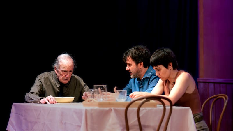 El montaje habla por lo demás del curso del tiempo, de la vejez, de las decisiones que se toman en el epílogo de la existencia y de la eutanasia: es la historia de un abuelo (Vadell) que estuvo a punto de morir, de su nieta y cuidadora (Milena Bastidas) y de su hijo que llega desde Alemania para visitarlo (Rodrigo Bastidas). En este reencuentro en la antigua casa familiar, los personajes comparten los recuerdos que los unieron y también aquellos que los llevaron a alejarse, junto con temas como la familia, los vínculos y las determinaciones difíciles que tarde o temprano se deben enfrentar.