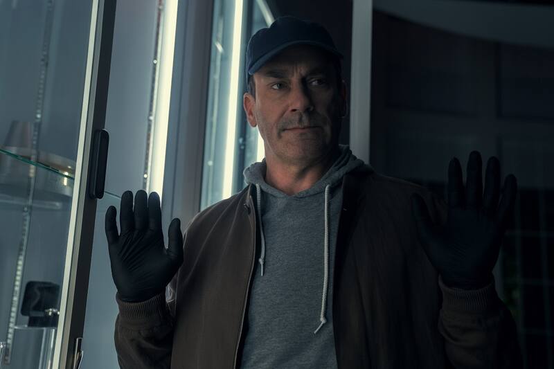 El ancla de todo es la presencia de Jon Hamm. Como él mismo ilustra, “no hay muchas tomas ni muchas escenas en las que no participe”. El actor encarna al personaje con completa naturalidad, desplegándose con soltura en los momentos más sombríos y en los pasajes más hilarantes de la historia.