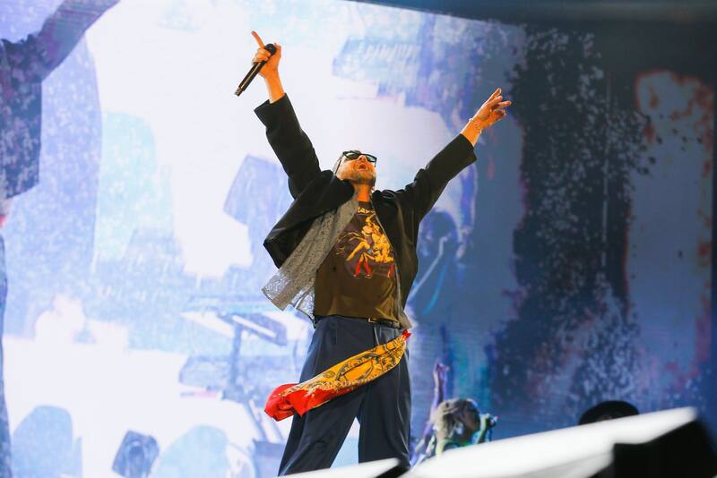 La puesta en escena del headliner está lejos de ser sencilla. Incluye a una gran banda sobre el escenario, que se posiciona bastante adelante en comparación a otros show de la jornada. Esto le deja el paso directo a la pasarela, muy cerca del público, aunque fuera de él.